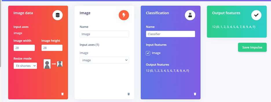 Trong project huấn luyện ảnh, Learning block – Classification được chọn nhằm thực hiện nhiệm vụ phân loại các đối tượng trong ảnh. Khối Classification cho phép mô hình học các đặc trưng và quy luật từ tập dữ liệu huấn luyện, sau đó áp dụng những kiến thức này để dự đoán nhãn của các ảnh mới. Đây là lựa chọn phù hợp cho các bài toán nhận dạng chữ số và ký tự, khi mỗi ảnh đầu vào chỉ thuộc về một lớp xác định. Các learning block khác như Transfer Learning (Images), Regression hay Visual Anomaly Detection cũng được cung cấp, tuy nhiên không phù hợp với mục tiêu phân loại cơ bản của project. Việc lựa chọn đúng learning block giúp đảm bảo mô hình được huấn luyện theo đúng mục tiêu, từ đó nâng cao độ chính xác và hiệu quả của hệ thống nhận dạng ảnh.