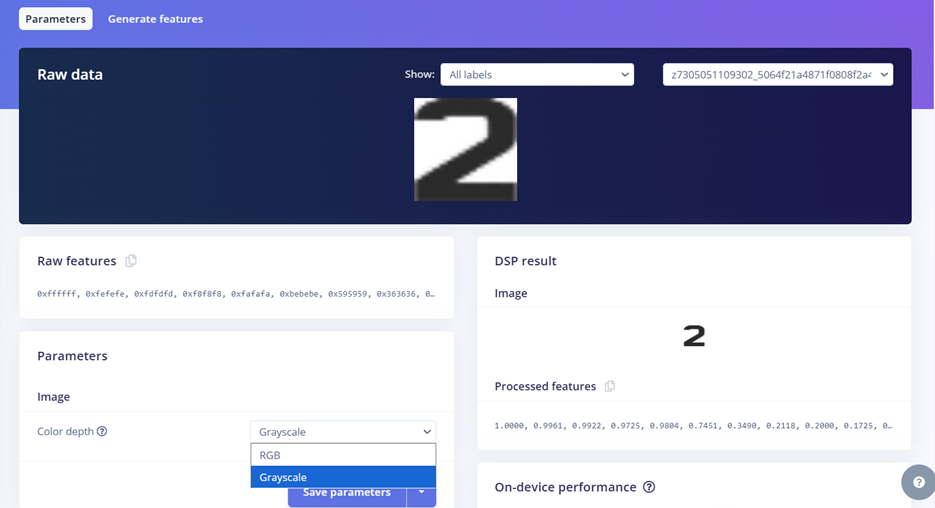 Dựa vào example của thư viện xuất từ Edge Impulse, ta phải chuẩn hóa dữ liệu để có features tương thích với model trước khi đưa vào dự đoán. Mô hình được trainning ở dạng graysacle nên sẽ áp dụng cách chuyển về graysacle mà công cụ dùng. Edge Impulse không dùng cách chia gray pixel cho 255 để chuẩn hóa bằng công thức sau: