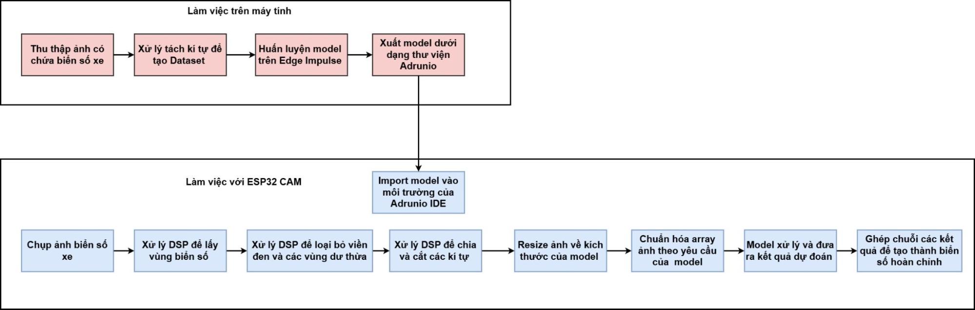 Trong buổi trò chuyện hôm nay, chúng ta sẽ cùng bước vào hành trình tích hợp trí tuệ nhân tạo ngay tại thiết bị biên, nơi một lõi MCU nhỏ bé – ESP32-CAM không chỉ chụp ảnh, mà còn nhìn, hiểu và quyết định. Không cần gửi dữ liệu lên đám mây, AI được triển khai trực tiếp ở biên để trích xuất và nhận diện biển số xe theo thời gian thực, phục vụ bài toán theo dõi xe ra vào tại các vị trí đỗ nơi camera được lắp đặt.
