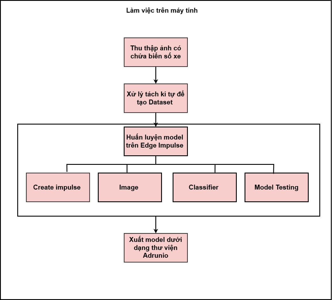 Hình 3. Sơ đồ quy trình huấn luyện và triển khai mô hình nhận diện ký tự biển số xe trên Edge Impulse