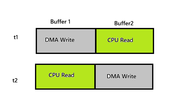 Vì ESP cam lấy dữ camera về thông qua DMA, nên chúng ta sẽ dùng cơ chế DMA double buffering để giúp tránh mất mát dữ liệu và phù hợp với bài toán realtime hơn.