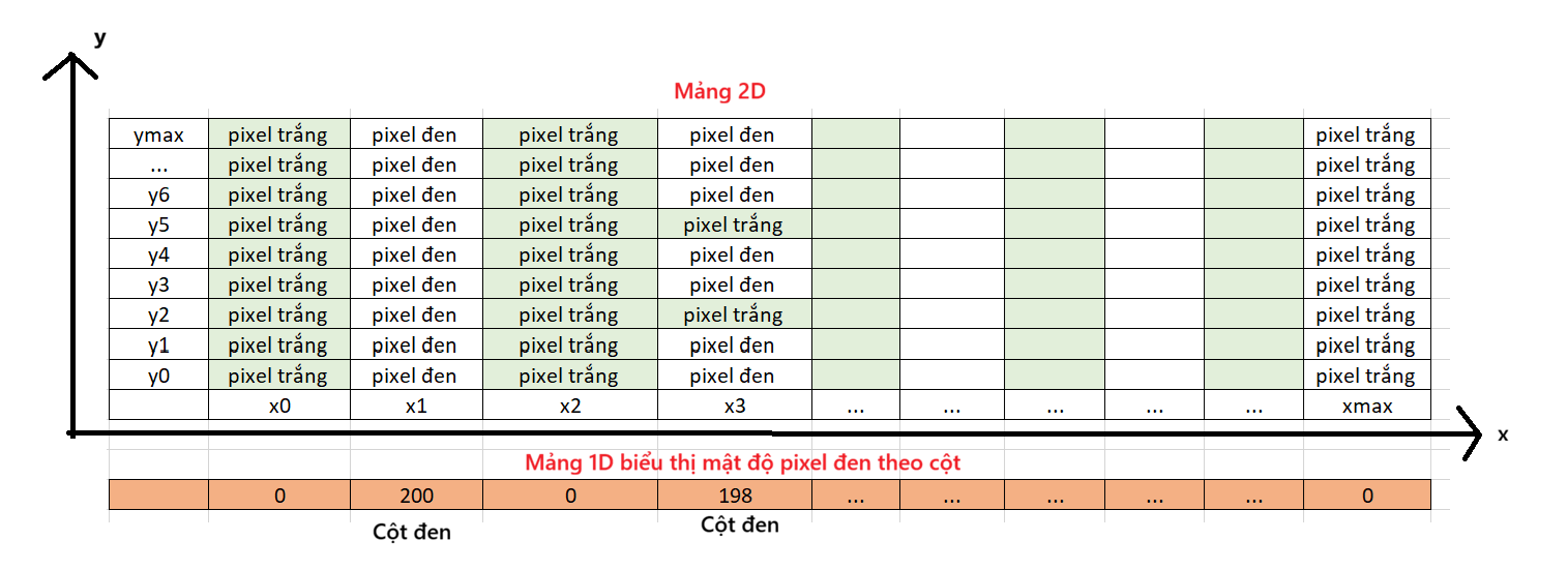 Hình 30. Ví dụ về cách xác định cột pixel đen cho mảng 2 chiều