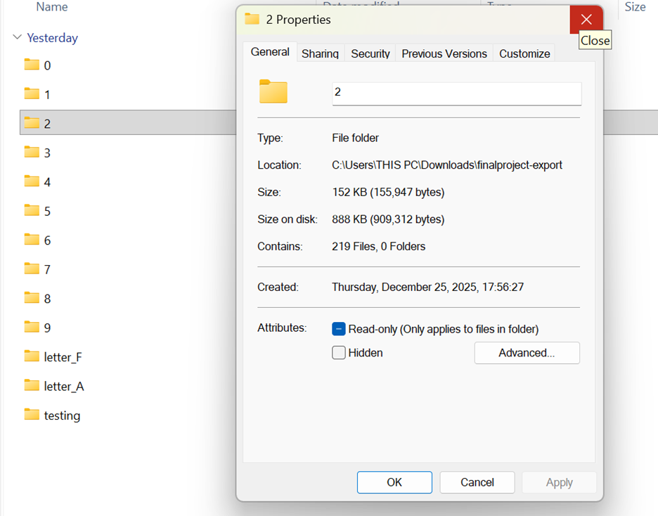 Tại mục Select a folder, chọn thư mục chứa toàn bộ các ảnh ký tự đã được chuẩn bị sẵn trên máy tính (cấu trúc thư mục theo từng lớp như folder “0”, “1”, …, “A”, “B”, …). Việc tải dữ liệu theo thư mục sẽ giúp tiết kiệm rất nhiều thời gian thay vì phải chọn và tải từng ảnh riêng lẻ.